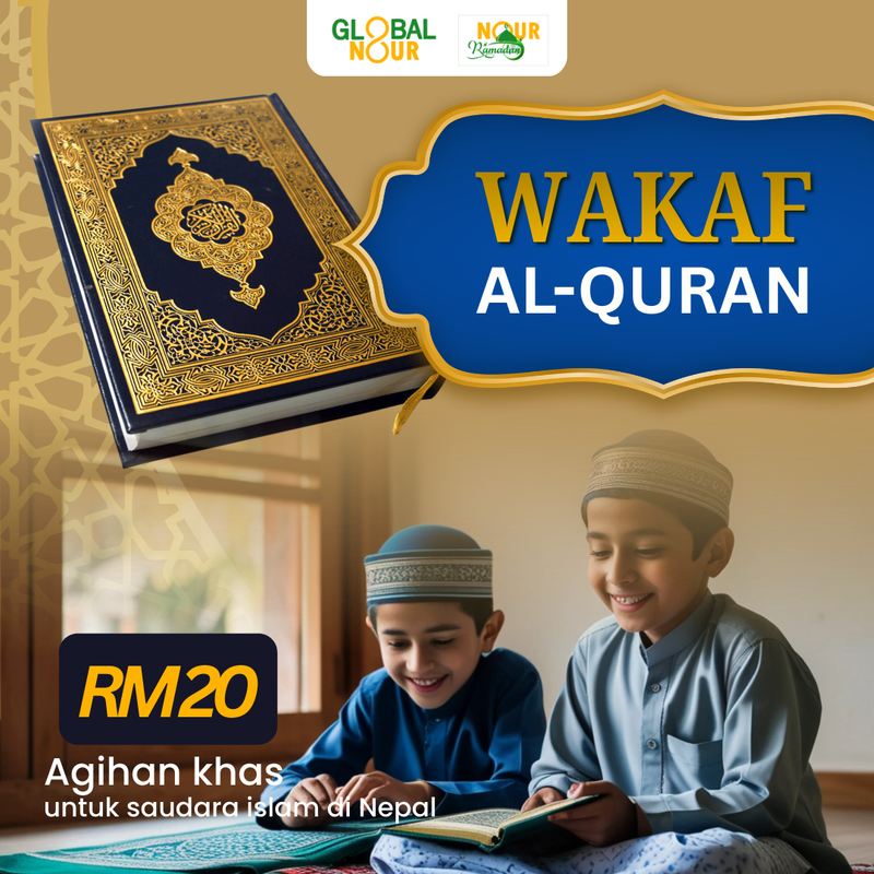 Jemput juga berwakaf alquran untuk kegunaan anak-anak muslim di sana belajar Al-Quran